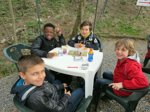Après un déplacement en bus sans histoire, on est arrivé au Moulin et on a pris notre collation.
