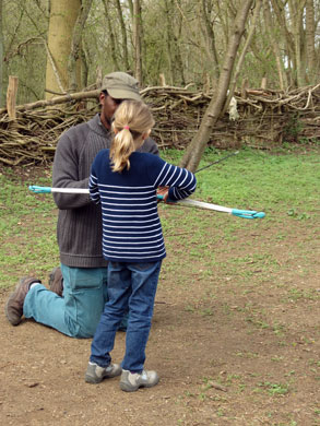 L’animation suivante proposait pour les uns de lancer la sagaie ou d’utiliser le propulseur, pour les autres du tir à l’arc. Il fallait tenter d’atteindre une représentation d’un bison ou d’un mammouth.