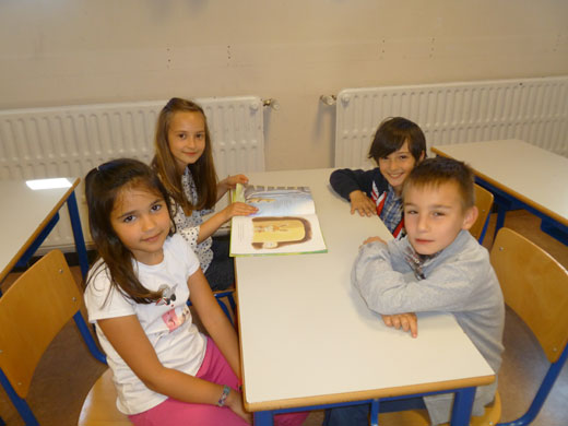 Tout d'abord, nous avions préparé la lecture d'un album pendant deux de nos activités avec les élèves de 4e année. Comme nous nous étions bien exercés, nous avons pu leur lire notre histoire sans problème.