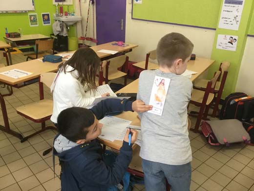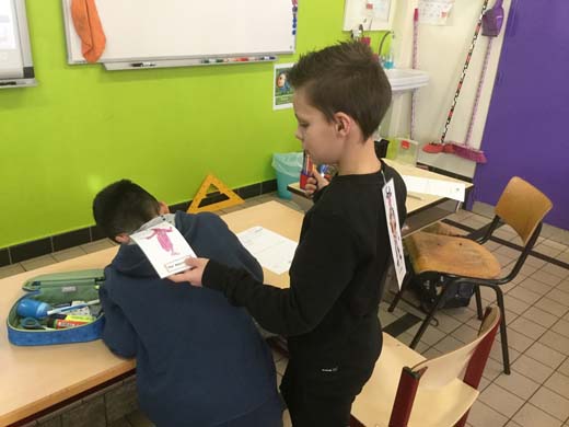 A l'occasion du carnaval, les institutrices de 3e année nous ont attaché un personnage déguisé dans le dos. En demandant des indices à nos amis, nous devions retrouver de qui il s'agissait, mais ils se ressemblaient beaucoup, il fallait être précis ! "Tu as un bouclier." "Elle a une cape rouge." "Il est un super-héros."... Voici le genre de phrases que l'on pouvait découvrir sur nos feuilles de route. Sans nous en rendre compte, nous apprenions à conjuguer les verbes être et avoir. Une bonne manière de faire le lien entre l'oral et l'écrit en conjugaison !
