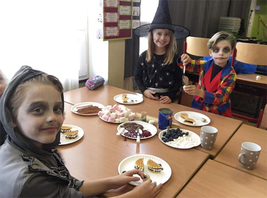 En 3-4, les élèves se sont transformés le temps d’une après-midi pour vivre des ateliers Halloween: histoires effrayantes, cuisine dégoulinante, jeux décapants, confection de masques monstrueux ou bricolages sur ce thème... Les enfants ont passé un beau moment avant de partir en vacances! À bientôt pour de nouvelles aventures!