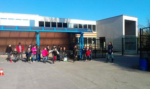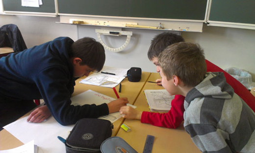 Nous l'avons recherché par groupe de six sur une carte de Visé. Pour cela, nous avons reçu des photos numérotées de 1 à 11 que nous avons remises dans le bon ordre. Ensuite, par groupe de quatre, nous avons calculé le nombre de kilomètres du trajet. Pour y arriver, nous avons utilisé l'échelle des cartes. Nous étions tous d'accord pour dire qu'il mesurait 3,4 km. Le lundi, nous avons calculé la vitesse à laquelle nous avions réalisé le trajet le vendredi. Mais avant de la trouver, nous sommes allés dans la cour pour courir 100 mètres. Nous étions par groupe de trois: un courait, un chronométrait et le dernier notait. Puis nous avons découvert le calcul de la vitesse horaire.
