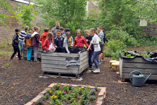 Sylvain, un animateur de la ville de Visé, spécialiste en potager, vient nous donner des conseils.