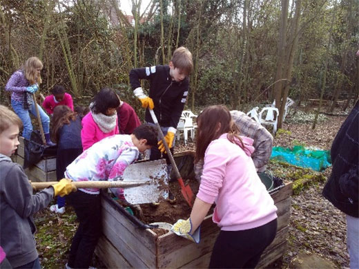 Pendant les congés de Pâques, des élèves de cinquième année primaire ont passé deux journées entières à travailler au potager de l’école.