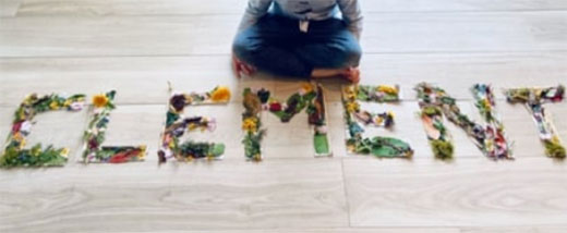 Eh bien, c'est créer des lettres avec toutes sortes de choses que vous trouvez dans la nature : branches, pierres, sapins, fleurs, herbes, tiges, sable, terre...