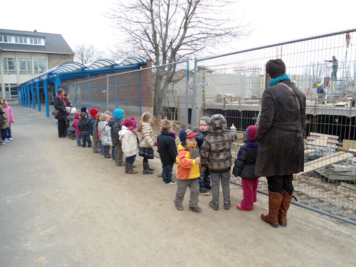 Nous avons regardé les ouvriers travailler. Le monsieur