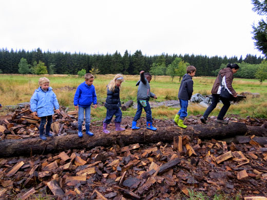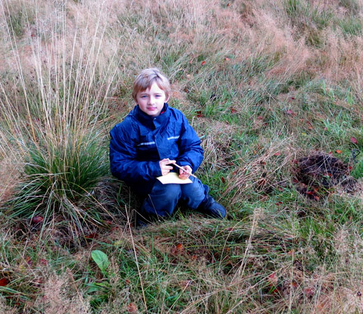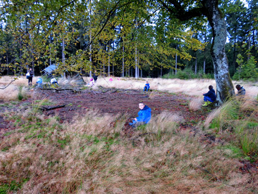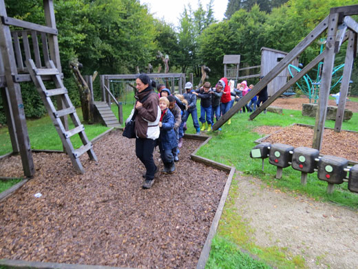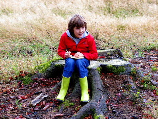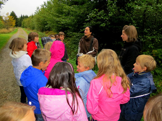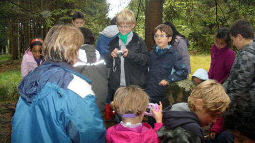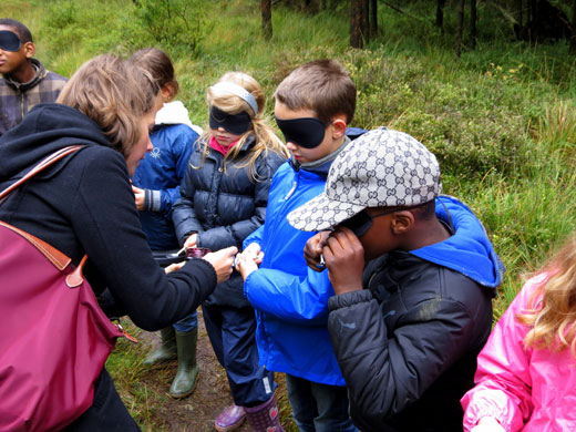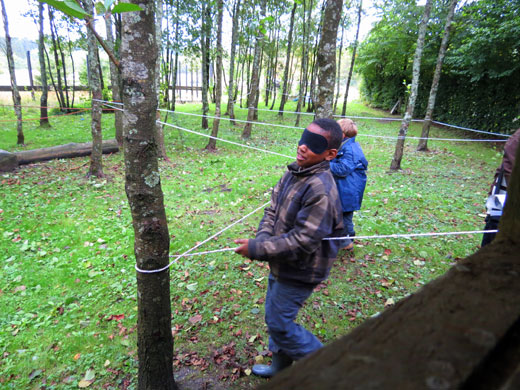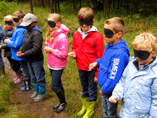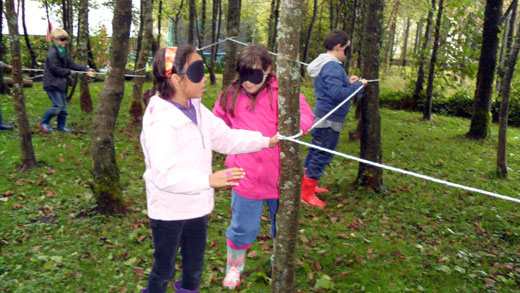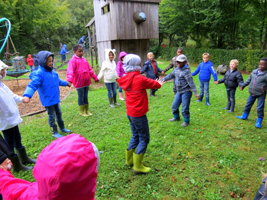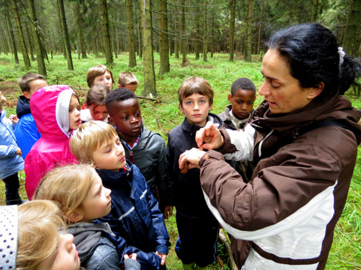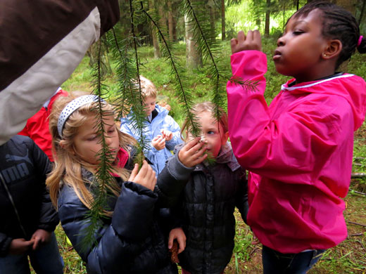 J’ai surtout aimé la promenade dans la forêt. Chemin faisant, j’ai découvert plein de choses intéressantes. J’ai vu un nid de fourmis. J’ai fabriqué un parfum en coupant en deux une pomme de pin, en y plaçant de la mousse, des fleurs et des feuilles que j’ai écrasées. J’ai appris à écouter et à dessiner les bruits de la nature. J’ai eu les yeux voilés et j’ai conduit ma classe le long d’un itinéraire limité par une corde.