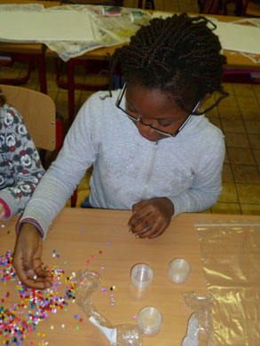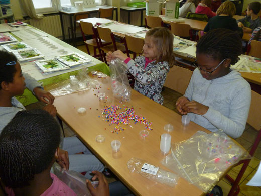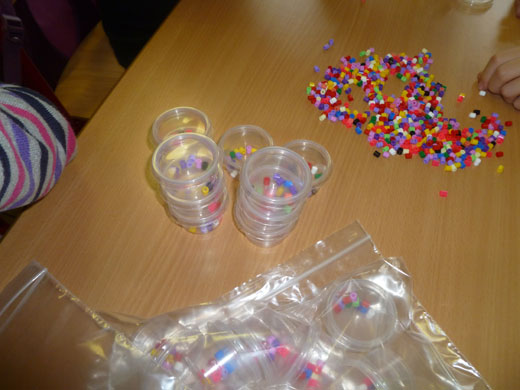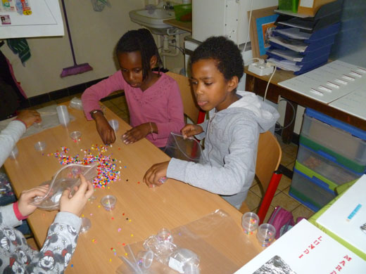 Pour commencer, madame nous a distribué beaucoup de perles et nous a demandé de les compter.