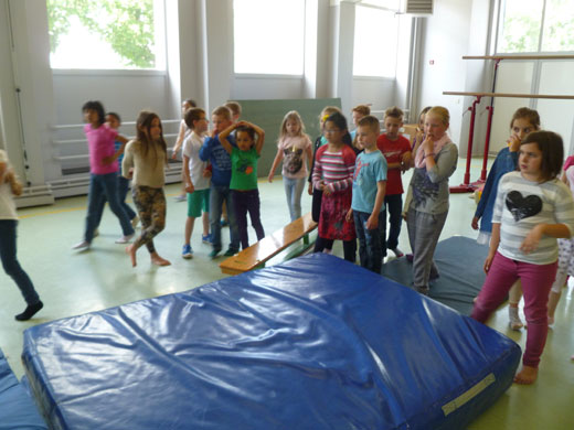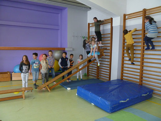 Après, nous avons réalisé un petit parcours à la salle de gymnastique.