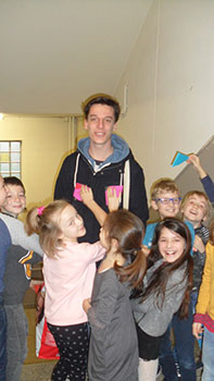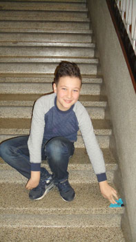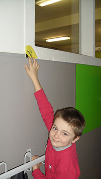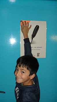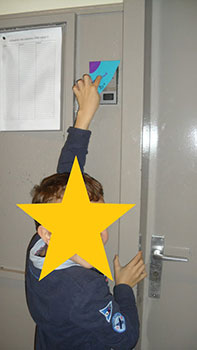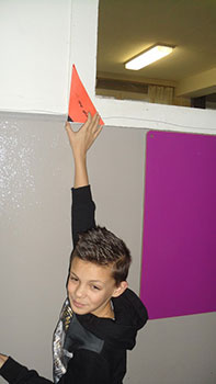 Aujourd'hui, nous avons parcouru l'école avec une mission : y trouver des angles droits. Eh bien, il y en a plein ! Sur les pancartes, les pavés, les portes, les panneaux, les murs et ? même... sur Monsieur Locht !