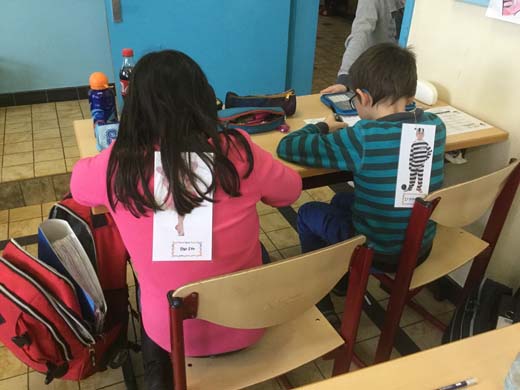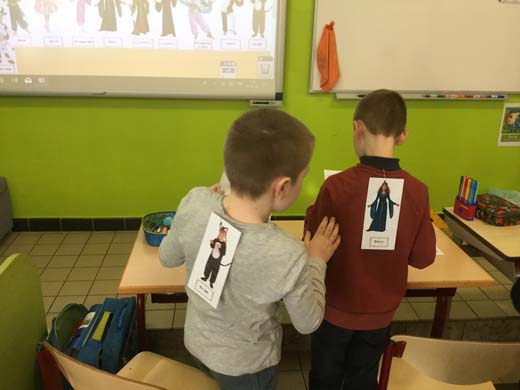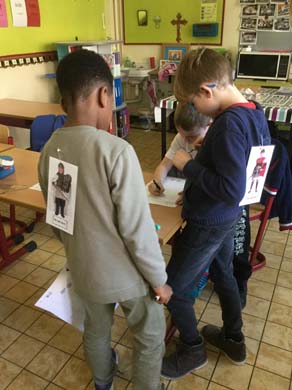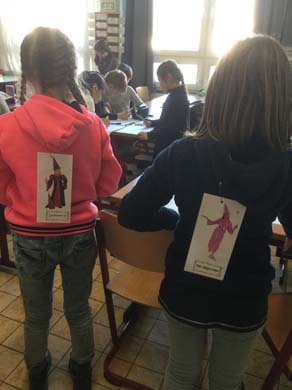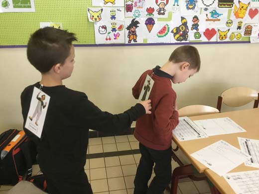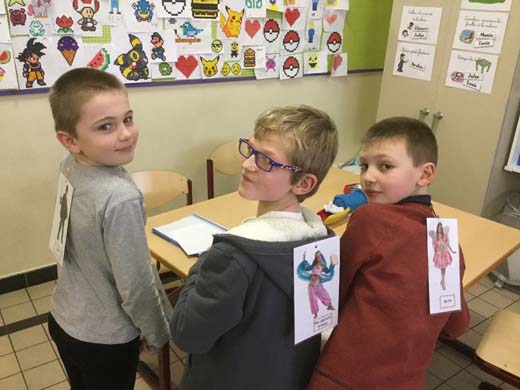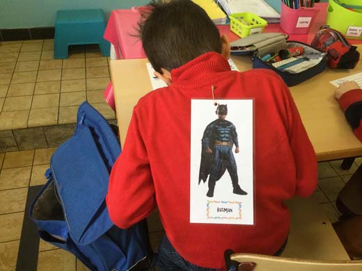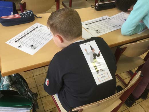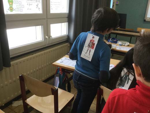 A l'occasion du carnaval, les institutrices de 3e année nous ont attaché un personnage déguisé dans le dos. En demandant des indices à nos amis, nous devions retrouver de qui il s'agissait, mais ils se ressemblaient beaucoup, il fallait être précis ! "Tu as un bouclier." "Elle a une cape rouge." "Il est un super-héros."... Voici le genre de phrases que l'on pouvait découvrir sur nos feuilles de route. Sans nous en rendre compte, nous apprenions à conjuguer les verbes être et avoir. Une bonne manière de faire le lien entre l'oral et l'écrit en conjugaison !