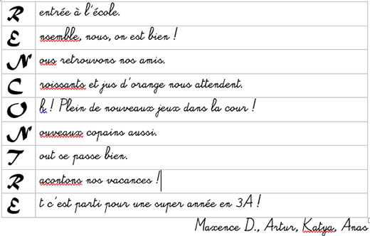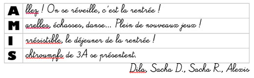 La rentrée des 3A en acrostiches !