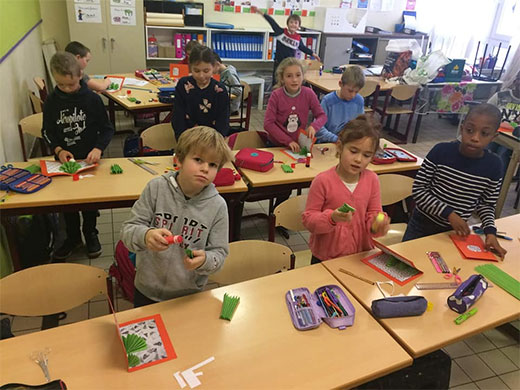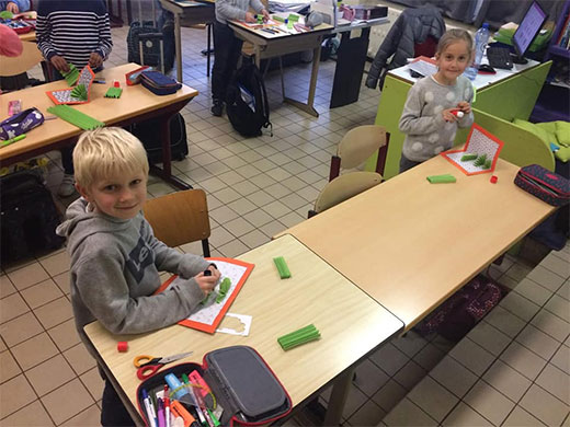 En 3A, dans la classe de Madame Korvorst, les élèves ont aussi bricolé durant la semaine. Au programme, un magnifique sapin 3D avec un petit mot personnel pour réchauffer les coeurs des personnes qui passeront les fêtes sur un lit d'hôpital. Et ce projet sera porté par tous les élèves de l'école !