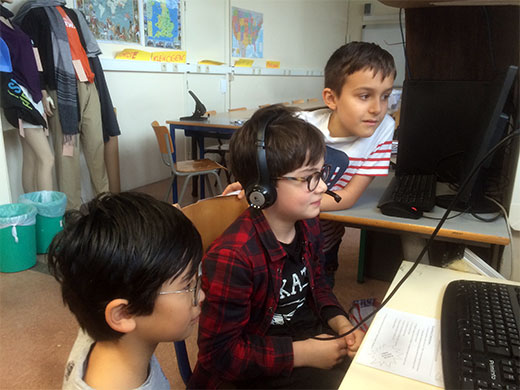 Tout le monde est maintenant capable d'éteindre et d'allumer l'ordinateur, ainsi que d'aller sur le site Internet de notre école pour y faire des recherches d'articles, de photos ou de vidéos. Plusieurs groupes ont même eu l'occasion de s'entrainer au traitement de texte. Pas toujours facile de trouver les signes de ponctuation, les accents et autres symboles particuliers.