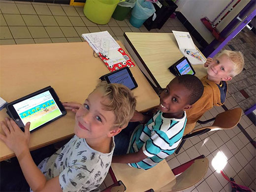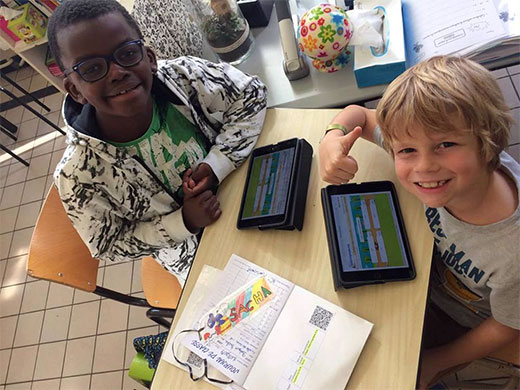 Première séance sur les tablettes pour les 3A. Et Madame nous a présenté un site avec des exercices créés par nos instits spécialement pour nous! Nous pouvons y aller quand on veut depuis une tablette ou un ordinateur. Tous les codes sont dans notre journal de classe. Allons-y !