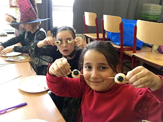 En 3-4, les élèves se sont transformés le temps d’une après-midi pour vivre des ateliers Halloween: histoires effrayantes, cuisine dégoulinante, jeux décapants, confection de masques monstrueux ou bricolages sur ce thème... Les enfants ont passé un beau moment avant de partir en vacances! À bientôt pour de nouvelles aventures!