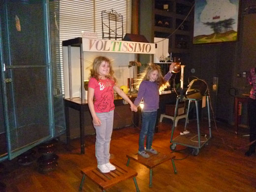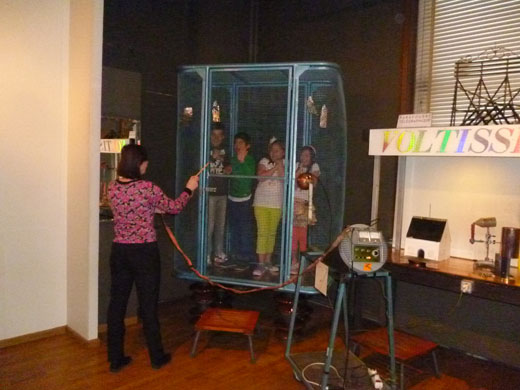 La guide nous a très bien accueillis. Nous avons fait plusieurs expériences avec de l’électricité et de l’azote liquide. Voici deux exemples : deux élèves de notre classe sont montés sur des tabourets en bois avec des pieds en métal terminés par du caoutchouc. Notre guide a sorti sa machine avec une boule qui produisait de l’électricité statique. Léna a touché la boule, elle tenait aussi la main de Victoria et leurs cheveux se sont dressés sur leur tête. Ensuite, notre guide nous a expliqué que l’azote liquide avait une température d’environ -200° Celsius. Elle a plongé une feuille d’arbre dans un grand récipient rempli d’azote liquide pendant cinq secondes puis elle a tapé la feuille contre la table et celle-ci a littéralement explosé en mille morceaux. Quelle belle journée. On a des souvenirs plein la tête. On adore faire des excursions et découvrir de nouvelles choses.