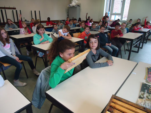Monsieur Davin est venu ce vendredi 4 octobre 2013 à l’école. Il nous a montré des cadres en bois et des photos d’abeilles.