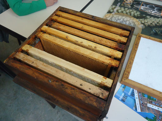 M. Davin a apporté des cadres en bois dans lesquels les abeilles ont construit des alvéoles.