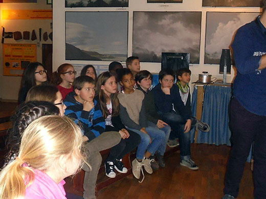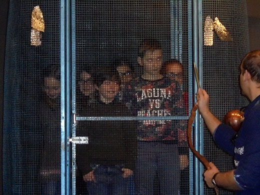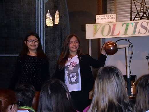 Une fois arrivés, nous avons participé à une expérience sur l’électricité. Nous avons appris que nous avons des électrons dans nos cheveux et que quand il y a un orage, il faut se mettre en boule. Ensuite, plusieurs élèves sont allés dans la cage de Faraday. Notre guide, avec un bâtonnet de cuivre, tapait sur la cage et il y avait des étincelles. La deuxième partie des expériences était sur l’azote liquide. Là, nous avons appris que dès que l’azote touche le sol, il devient du gaz.