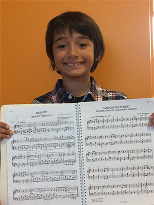 J’ai apporté une partition de piano parce que je joue du piano tous les jours avec ma maman. Je fais du piano depuis trois ans et j’adore ça.
