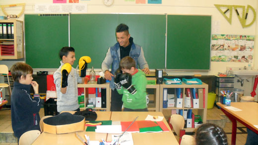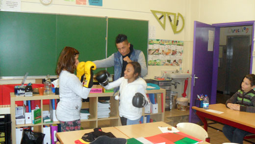 Deux élèves de notre classe font de la boxe. C’est pour cela que nous l’avions invité. Nous avions préparé une série de questions que nous souhaitions lui poser. Il y a répondu avec plaisir. Plus il parlait, plus nous avions de nouvelles questions qui nous venaient en tête.