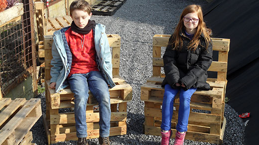 En janvier, le vendredi fin de journée, certains élèves de notre classe sont allés avec Monsieur Locht construire des bancs à partir de palettes de récupération. Ces bancs seront disposés dans l’espace détente du potager.