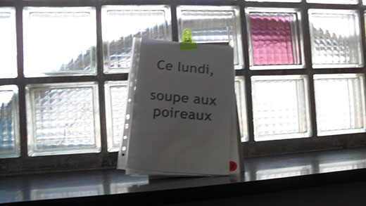 La semaine, le gout de la soupe du lundi suivant est affiché dans le couloir. Le lundi matin, la commande est réalisée et nos cuisinières la préparent alors le jour même.