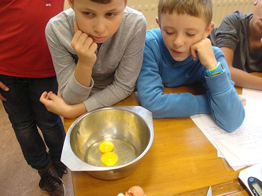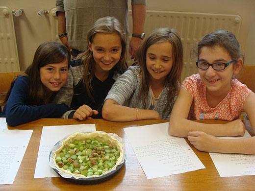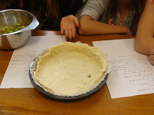 Au départ, nous sommes allés visiter le potager et nous avons cueilli de la rhubarbe qui avait été plantée l’année dernière. Ensuite, nous avons suivi la recette que Monsieur nous avait apportée, et nous avons tous ensemble, préparé notre tarte. Nous l’avons dégustée le lendemain.