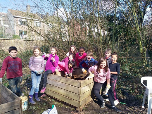 Pendant les congés de Pâques, des élèves de cinquième année primaire ont passé deux journées entières à travailler au potager de l’école.