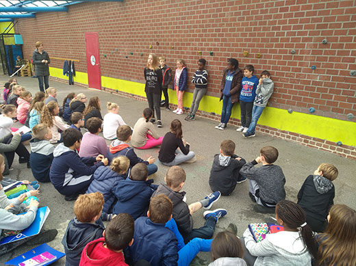 Aujourd'hui les candidats délégués au conseil communal se sont présentés devant tous leurs condisciples de 5e année et ont expliqué leur programme.