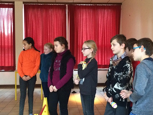 La danse folklorique : Tous ensemble, nous avons réalisé une danse folklorique qui se réalise à deux et que nos grands-parents dansaient quand ils étaient plus jeunes. Chaque fois qu'on finissait l’enchaînement, on changeait de partenaire avec celui de derrière. Tout le temps, jusqu'à ce que l'on donne la main à tous les garçons. La danse se réalise de plus en plus vite.