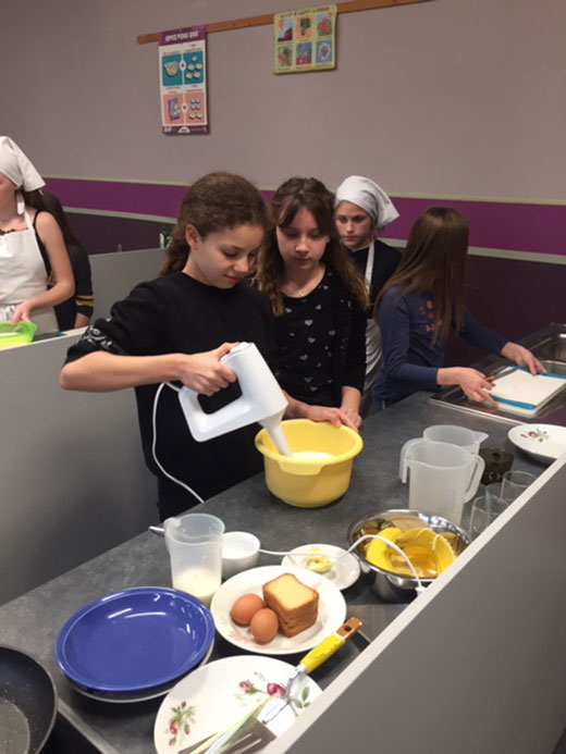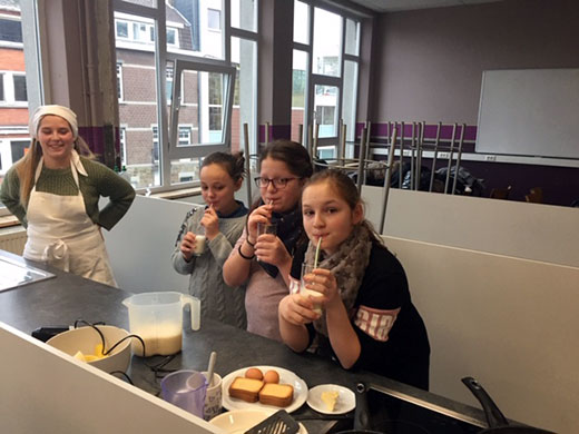 Après, nous sommes allés à l’atelier cuisine où nous avons préparé avec l’aide des 4ème secondaire un milkshake à la banane et du pain perdu.