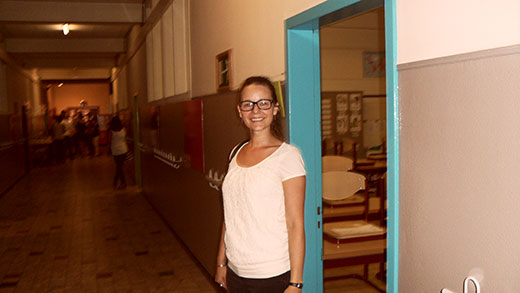 Le but de sa visite était de nous observer travailler sur le tableau interactif. Madame Tilman avait préparé un jeu sur les compléments circonstanciels. C’était super chouette ! Des étiquettes apparaissaient au tableau et nous devions les remettre dans la bonne colonne. Il y en avait trois ; C.C.M., C.C.T. et C.C.L.. Pendant que madame Tilman appelait des élèves au tableau, les autres enfants écrivaient les réponses dans leur cahier de brouillon. Après, madame la Ministre s’est rendue dans la classe de Monsieur Deuse afin d’observer les élèves de sixième travailler sur les tablettes.
