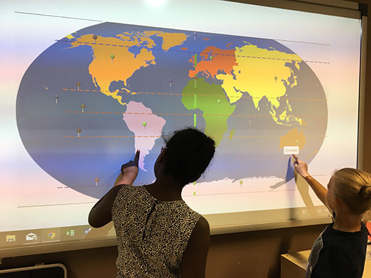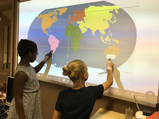 En outre, la connectivité permanente et les logiciels intégrés permettent une adaptation de la leçon en temps réel : accès permanent à une recherche sur internet, visionnement d’images en rapport avec le cours ou la question posée, films documentaires, lecture des nouvelles du jour, météo, nous pourrions continuer à l’infini. Cela permet de donner cours de façon plus intuitive, et de rebondir sur le vécu et les questionnements des enfants instantanément. C’est sans aucun doute plus vivant, moins « figé » et plus intéressant pour nos têtes blondes (ou brunes).