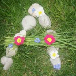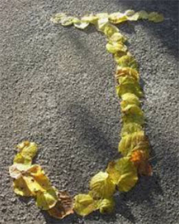 Eh bien, c'est créer des lettres avec toutes sortes de choses que vous trouvez dans la nature : branches, pierres, sapins, fleurs, herbes, tiges, sable, terre...