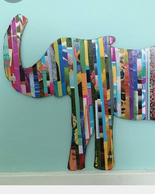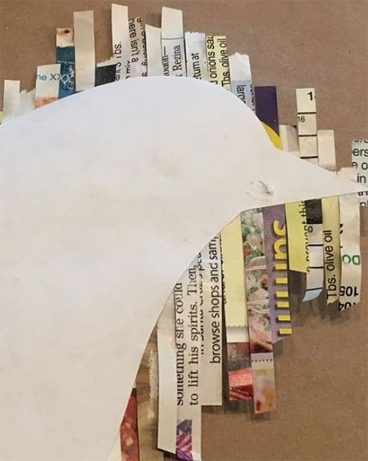 Ensuite, découpez de longues bandes colorées dans des magazines ou dans des journaux.