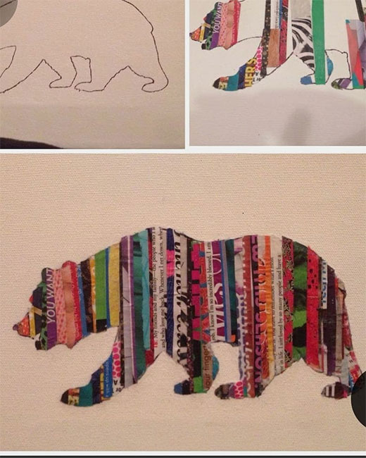 Collez ces bandes sur votre silhouette d'animal découpée. Attention, ne laissez pas de blancs !