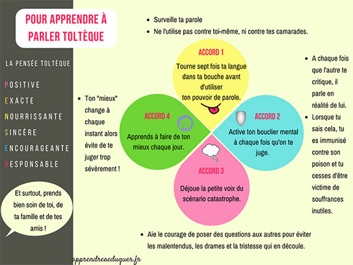Les quatre accords Toltèques sont en quelque sorte un « code de conduite » qui permet d’appréhender le monde sereinement et de façon plus saine. Ce sont des mantras pleins de bon sens, mais surtout d’une très grande puissance.